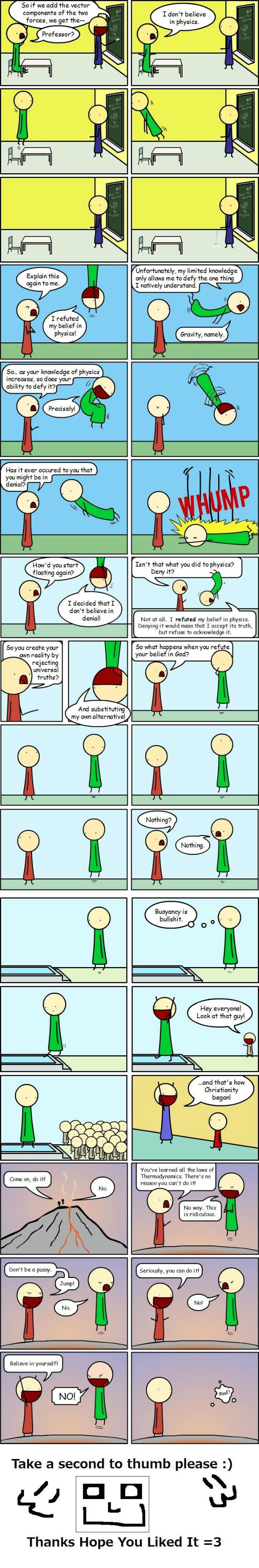 Thats why you mustnt believe in physics